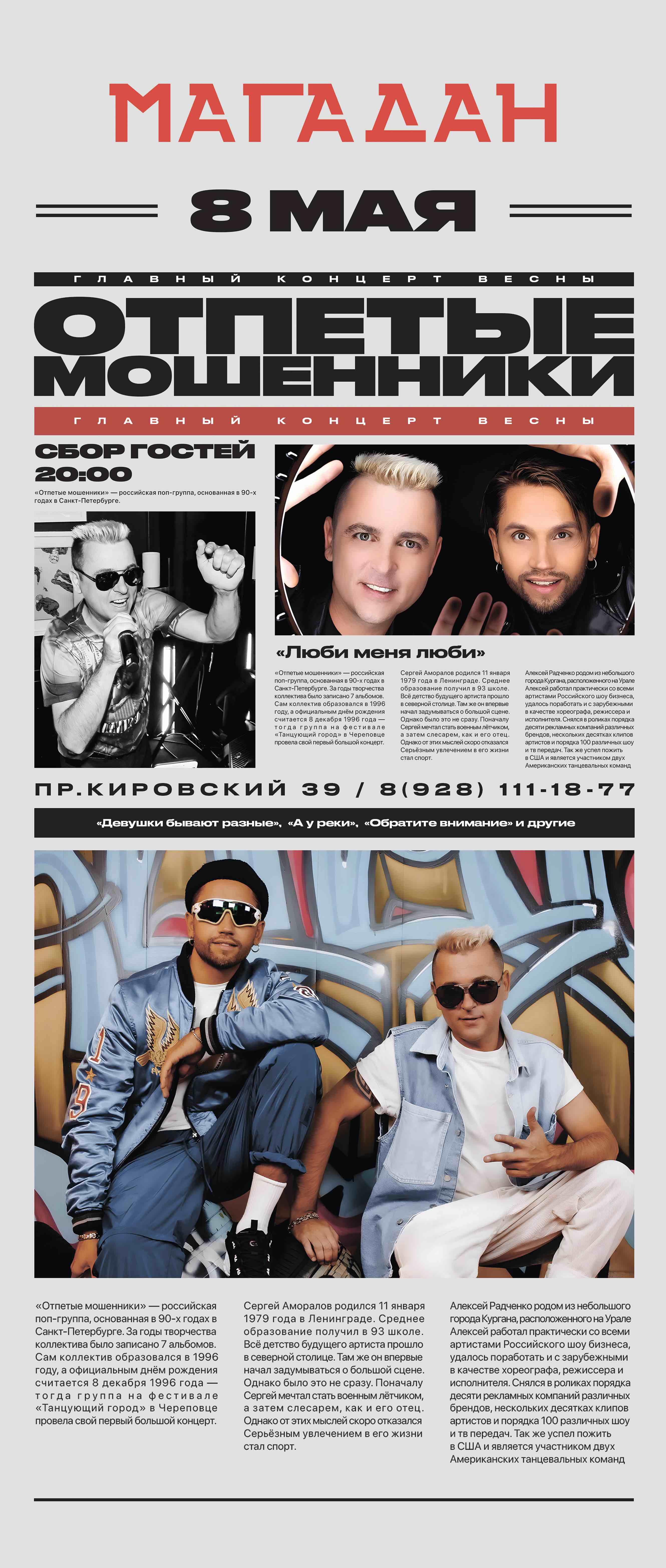 8 мая концерт «Отпетых мошенников» в Магадане✨